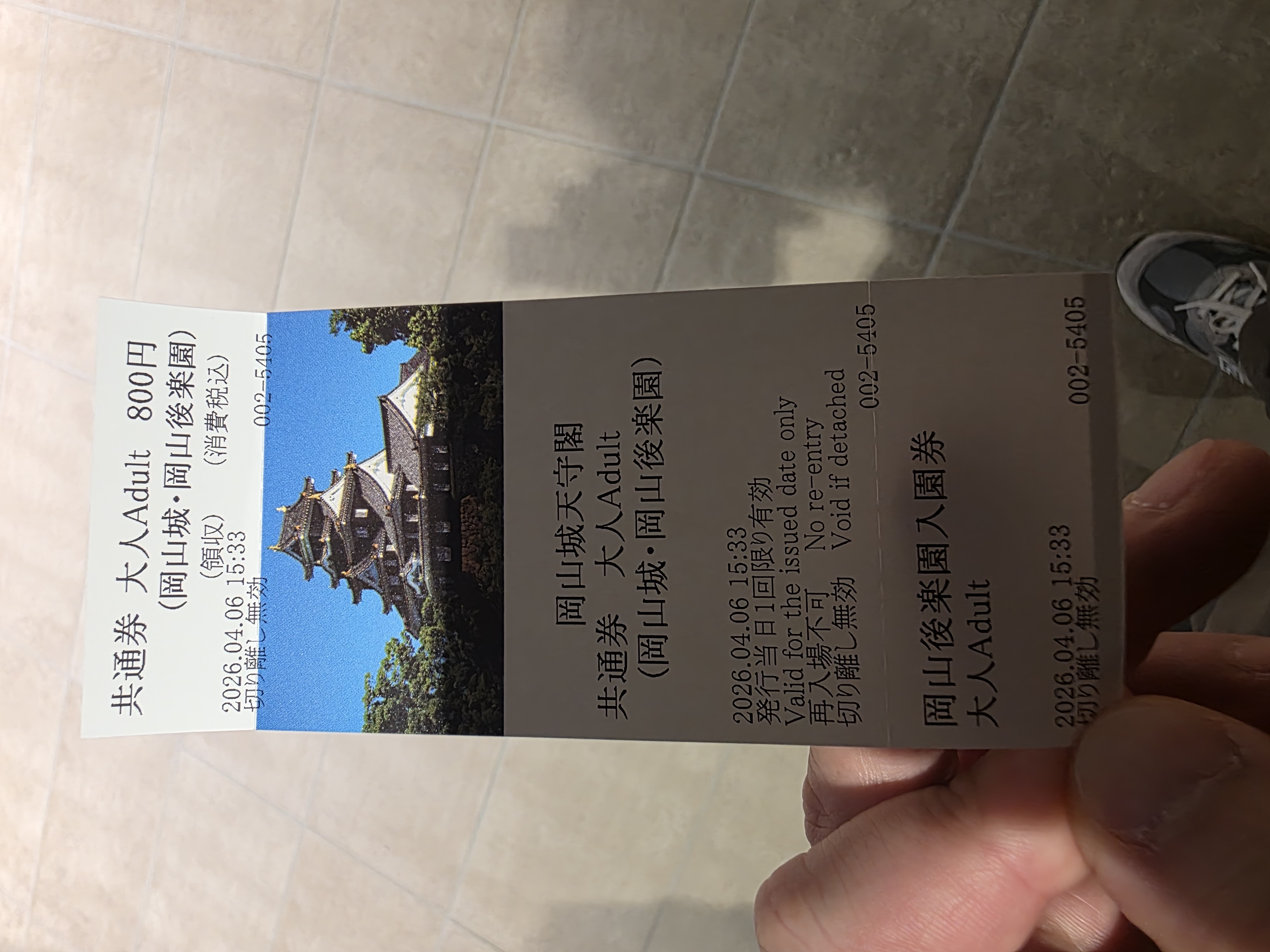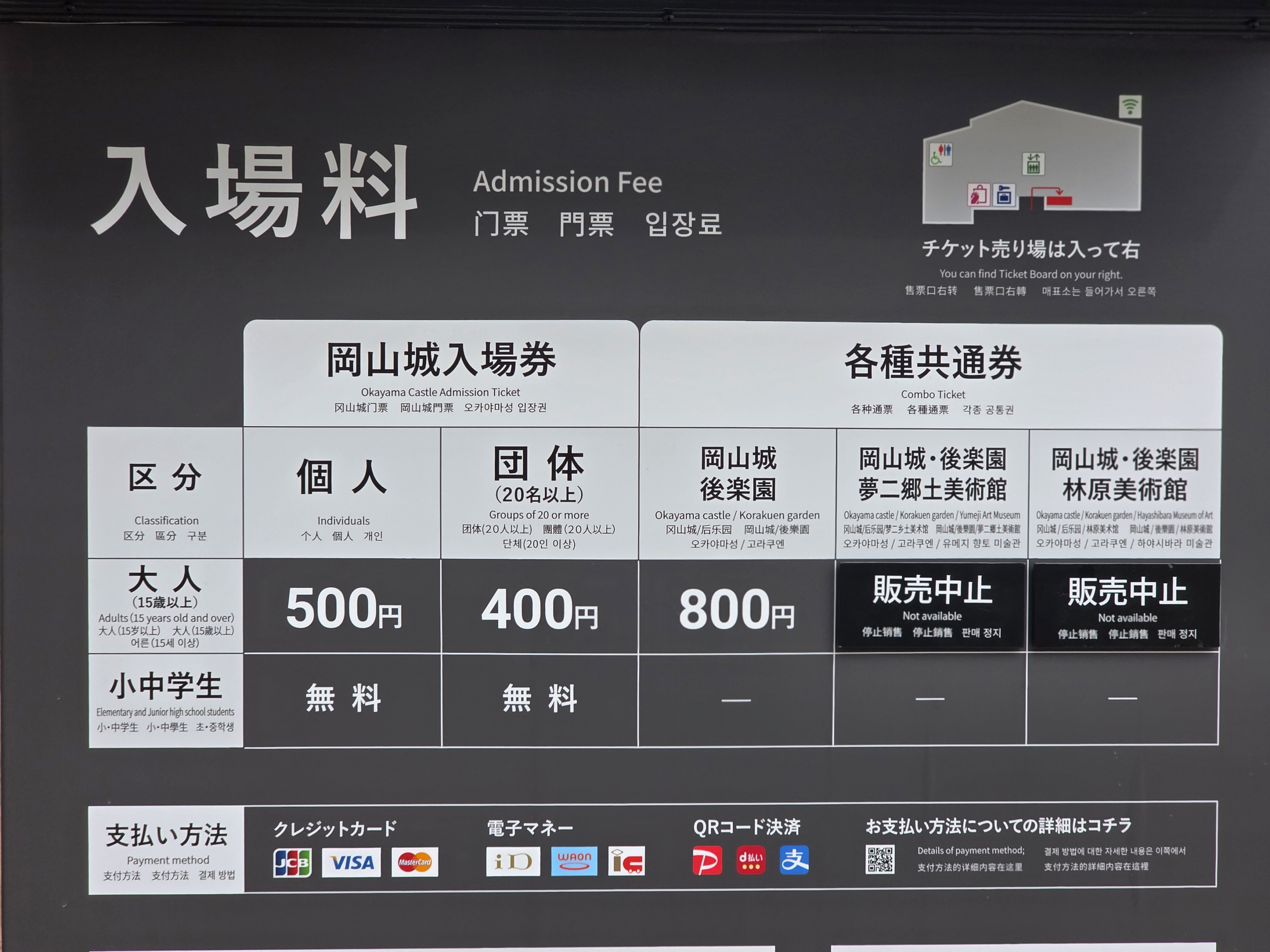 오카야마성 입장권은 500엔입니다.